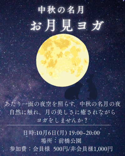 お月見ヨガ 『中秋の名月』 【日時】10月6日(月)19時〜20時 【場所】前橋公園